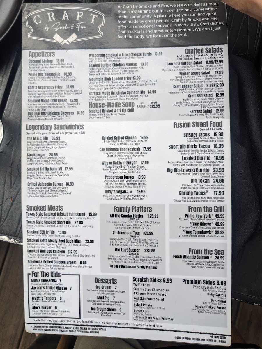 Not just limited to sandwiches, Craft by Smoke and Fire features sides and salads that deserve recognition, like the creamy loaded baked potato and their selection of hearty salads. The Chili Bowl is also a crowd favorite, noted for its comforting warmth and rich flavor profile. Customers have praised the beef ribs as falling off the bone, truly a testament to the kitchen’s skill and dedication to quality.